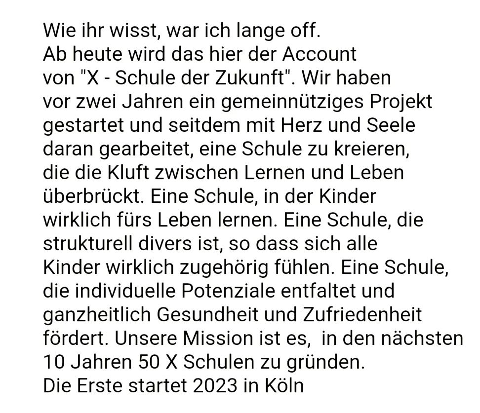 In the first X-School in NRW (Germany) we will not charge any school fees as this school is founded as a state-approved alternative school. In order to be able to finance the special aspects of the school, there is a voluntary parental contribution that is determined and scaled according to income.
